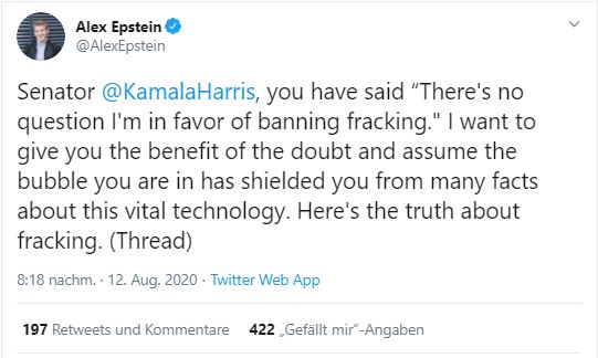 - Weil Fracking für unser Leben so wichtig ist und sicher und verantwortungsbewusst durchgeführt werden kann, wäre es verrückt und grausam, Fracking zu verbieten. Wir sollten weiterhin nur gefährliche Fracking-Missbräuche verbieten und ansonsten weiterhin den Wohlstand genießen, den uns diese wunderbare Technologie bringt