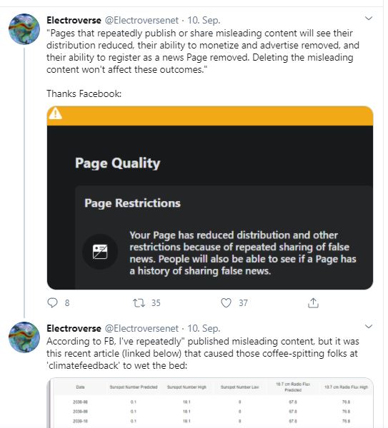Social-Media-Kanäle schränken die Reichweite von Electroverse aus unerklärlichen Gründen ein: Twitter eliminiert Followers, während Facebook Posts als „falsch“ kennzeichnet während Facebook Beiträge als „falsch“ kennzeichnet und mir verkrüppelte „Seitenbeschränkungen“ auferlegt hat:
