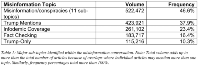 … We found that media mentions of US President Donald Trump within the context of COVID-19 misinformation made up by far the largest share of the infodemic.