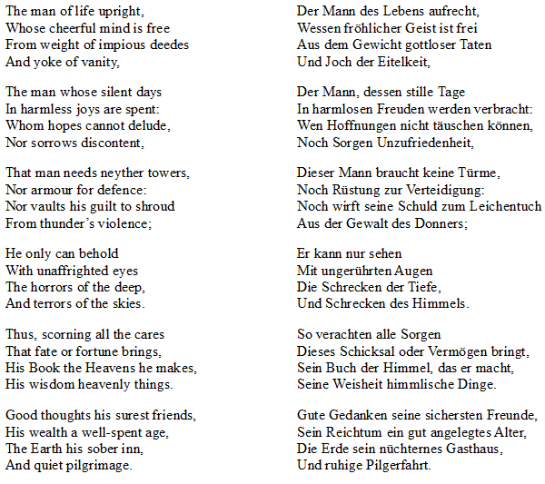 [Die folgenden Zeilen sind 1 : 1 von Linguee übersetzt und übernommen. Auch das englische Original ist ja schon eine Übersetzung aus dem Lateinischen. Lord Monckton ist jedoch der lateinischen Sprache mächtig und wird die Übersetzung der Ode entsprechend angepasst haben. Anm. d. Übers.]
