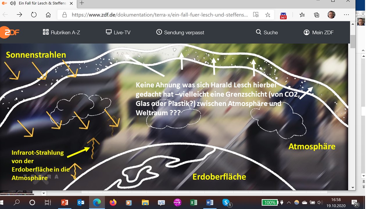 Diese Sendung habe ich auch gesehen und es war kurz gesagt eine einzige Peinlichkeit. Alle Themen wurden oberflächlich behandelt, man spürte, wie der Boulevardjournalismus im Vordergrund stand. Das Dirk Steffens von Technik und Wissenschaft keine Ahnung hat, war ja allgemein bekannt, das aber der Lesch sich für so einen billigen Klamauk hergibt, ist eine neue Dimension. Was sagt eigentlich seine Uni dazu? Fakt ist, dass hier wahrscheinlich die geringere Wärmeleitfähigkeit von CO2 die Temperaturerhöhung ausgemacht hat, das Experiment war aber so kurz und primitiv ohne jegliche definierte Bedingung ausgeführt, dass es vom Zuschauer nur schwer verstanden werden konnte. Vielleicht war das aber auch so gewollt. Ich habe mir auch überlegt, dagegen Einspruch zu erheben, aber vom ZDF habe ich noch nie eine vernünftige, auf Fakten basierte Antwort erhalten, daher verzichtete ich darauf. Die Überschrift dieser Sendung, „Streiten für die Wahrheit“ war eine Verhöhnung des Zuschauers.