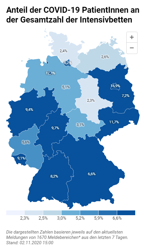 Bild 5 Deutschland Covid-19-Belegung Intensivbetten. Quelle. DIVI Intensivregister, Stand 02.11.2020