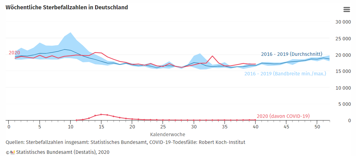 Warum seitens unserer Politiker deshalb aktuell eine Coronahysterie ausgerufen wurde, kann allerdings nicht mit den gegenüber dem Frühjahr nur leicht angestiegenen Mortalitätszahlen begründet werden (sofern diese mit Verstand und nicht nur mit politischer Hysterie betrachtet werden).