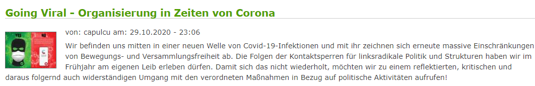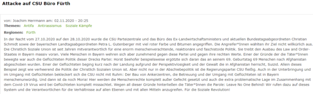 Bild 14 Mitteilungen auf der Antifa nahen Seite „de.indymedia.org“