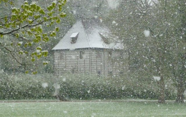 Arktikluft (xA) verursacht mitunter noch spät im Frühjahr kräftige Schneeschauer. Foto: Stefan Kämpfe