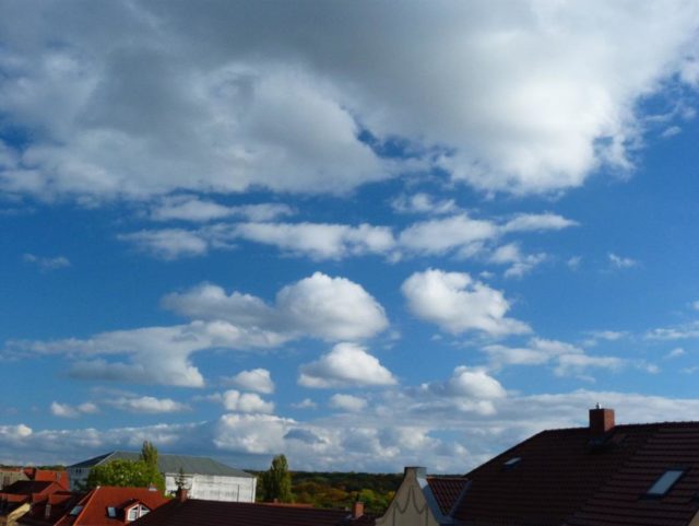 Erwärmte maritime Subpolarluft (mPs) unter Zwischenhocheinfluss. Mehr oder weniger kräftige Schichthaufenwolken bei oft guter Fernsicht und kräftigem Himmelsblau sind typisch. Da die Erwärmung dieser Luftmasse von unten erfolgt, weist sie in der Regel sehr starke vertikale Temperaturgradienten auf, was zu jeder Jahreszeit zu häufigen Schauern und Gewittern in dieser Luftmasse führt. Foto: Stefan Kämpfe