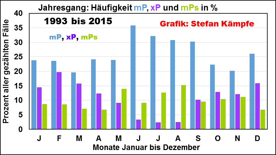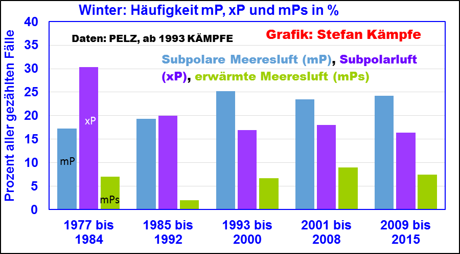 Abbildung 6: Etwas weniger xP, dafür etwas mehr mP und mPs im Winter. Aber auch im Winter blieben die Häufigkeitsverhältnisse nach dem Klimasprung, der im Winter 1987/88 stattfand, nahezu konstant.