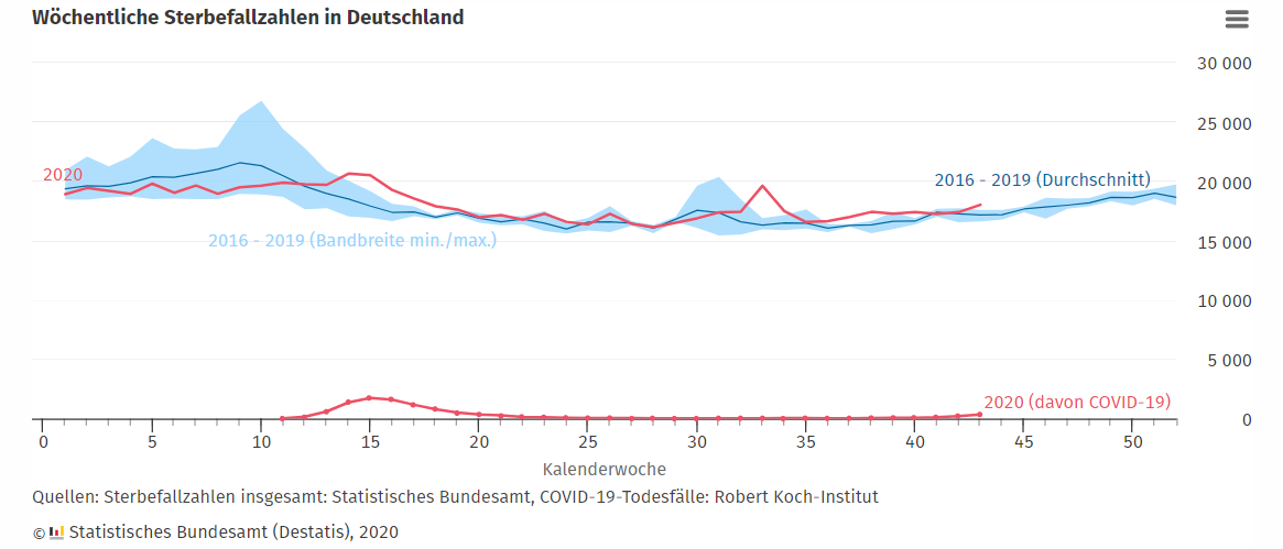 Was wir aus diesem Artikel entnehmen können ist, dass mit Sicherheit die Zahlen gefälscht werden. Der Peak in April entspricht gar nicht der Realität. Es gab sogar eine Untersterblichkeit. Der rote Strich hätte eigentlich nach unten gehen müssen also genau das Gegenteil. Das ist auch kein Einzelfall. Auch bei Klimaforschung wurde der berühmte „Hockeystick“ künstlich erzeugt völlig abwegig und absurd von den realen Zahlen. Nicht nur das sondern auch im Finanzsystem werden Zahlen ständig manipuliert und gefälscht. Die Arbeitslosigkeit, DAX Index völlig abgekoppelt von der realen Wirtschaft. Es können auch nicht ein paar oder immer wieder die selben Personen sein. Wir erleben eine organisierte Fälschung, organisierte Lüge, einen organisierten Betrug an Menschheit mit Teilnahme der Medien, deren Aufgabe es ist ein Agenda zu verfolgen. Wenn es sein muss, werden wichtige Informationen ausgeblendet, relativiert, falsch dargestellt, untergeordnet. Man benutzt alle möglichen Tricks. In so einem System ist die Umsetzung einer realen Wissenschaft kaum noch möglich, wenn Sie z.B. eine Studie rausgeben und Jemand kommt ihre Zahlen komplett umschreibt oder fälscht. Das alles hat mit der Idee einer aufgeklärten Gesellschaft absolut nichts zu tun sondern eher mit einer manipulierten, betrogenen Gesellschaft.