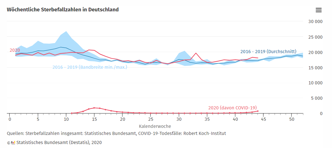Es ist auch bei einem Autor, wie es Herr Kuntz ist, immer wieder dasselbe Malheur: Alle, aber auch alle sind Covid 19 Tote. Seit Monaten stellt sich doch die Frage: Wo sind die anderen Viren. Ab Mai berichtete der wissenschaftliche Teil des?RKI: Keine Nachweis von SARS Cov 2. Im Sommer ausschließlich Rhinoviren am Werk. Wie immer.Zweite Frage: Wurden die angeblich an und mit Corona-Verstorbenen auf das begleitende, evtl. den Tod bedingen Virus labortechnisch untersucht? Mit Sicherheit nicht – RT-PCR-DROSTEN-TEST und schon ist der nächste Covid 19 Verstorbene ermittelt.