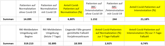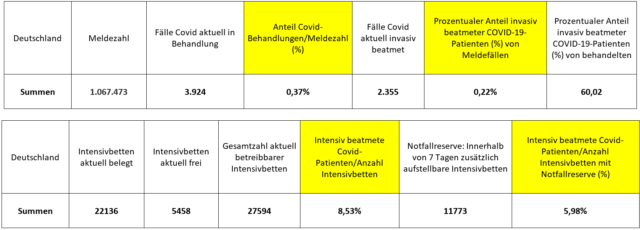 Bild 5 COVID-19 Zahlen im DIVI-Register, Tabelle „Fallzahlen in Deutschland“. Tabelle des DIVI vom Autor erweitert
