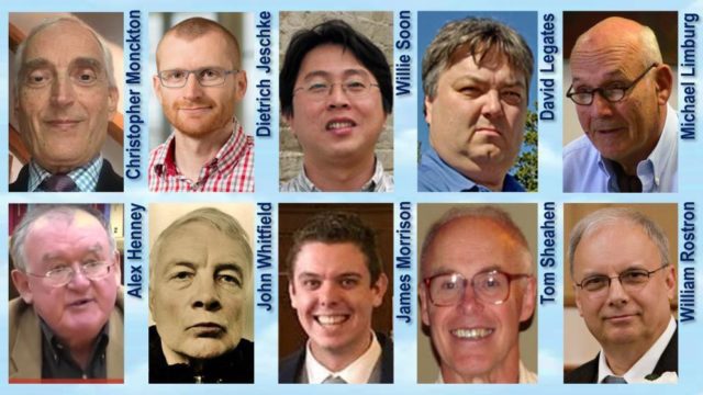 Professor Dr Mojib Latif, Mr Nic Lewis, Professor Adrian Mathias, The Viscountess Monckton of Brenchley, Dr Benoît Rittaud, Academician Dr Vladimir Semenov, Professor Nir Shaviv, Dr Roger Taguchi, Mr George White and Academician Dr