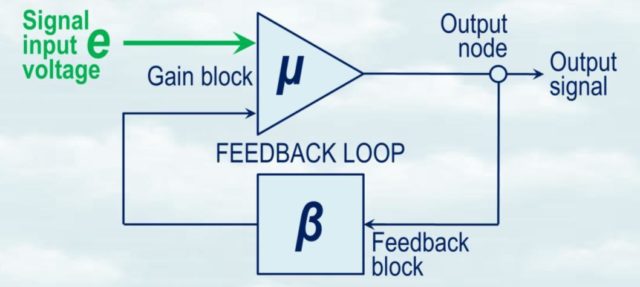 Der Verstärkungsblock μ im Blockdiagramm von Black (Abb. 4) verstärkt das Eingangssignal e, so wie die direkte Treibhausgas-Erwärmung die Emissionstemperatur verstärkt. Der β-Rückkopplungsblock erzeugt eine Rückkopplung nicht nur auf den μ-Verstärkungsblock (direkte Treibhausgas-Erwärmung), sondern auch auf das Eingangssignal e.