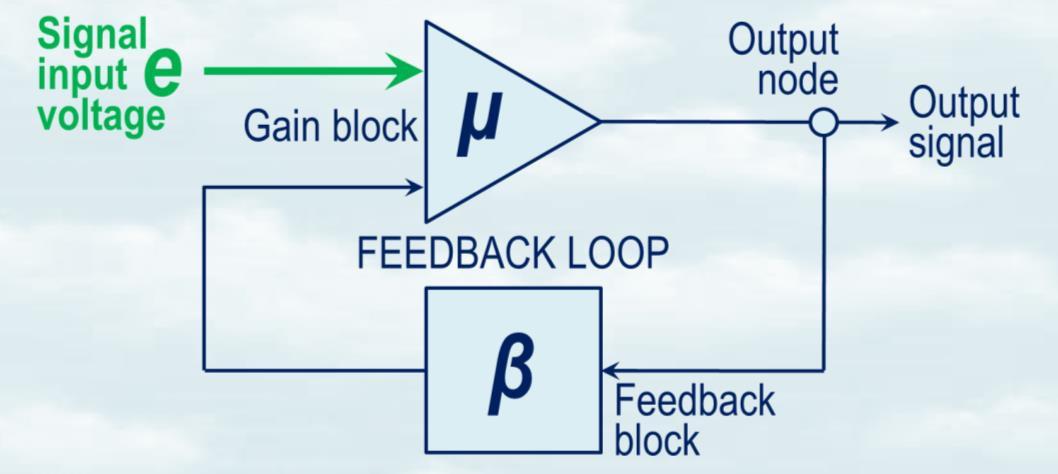 Die rückgekoppelte Verstärkerschaltung von Black (Abb. 4) zeigt nicht nur den μ Verstärker (im Klima, direkte Erwärmung durch Treibhausgase) und den β Rückkopplungsblock, sondern auch das Eingangssignal e (die durch die Sonnenwärme getriebene Emissionstemperatur bei Abwesenheit von Treibhausgasen). Das Papier von Black nennt e die „Signaleingangsspannung“.