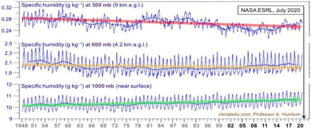 Die Modelle wurden so programmiert, dass sie davon ausgehen, dass Wasserdampf, wie CO2, Methan, Distickstoffoxid und Ozon, in der gesamten Atmosphäre gut vermischt wäre. Das ist natürlich Unsinn.