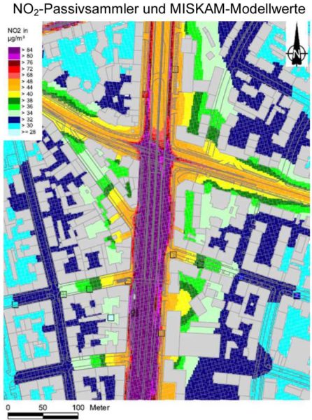 In den exakten Wissenschaften zählen der Nachweis und die Dokumentation von Ursache-Wirkungs-Beziehungen. Dies gilt auch dann, wenn die Zusammenhänge nichtlinear sind und komplexe Wechselwirkungen unterschiedlicher Einflussgrößen zu berücksichtigen sind. Das ist in jeder Wissenschaft Alltag. Als Beispiel sei hier die Dokumentation der Luftbelastung mit NO2 in einem Teil der Stadt München gezeigt, siehe Bild 1. Hier wurden im Rahmen systematischer Messkampagnen sowohl die örtliche Verteilung als die tages- und jahreszeitlichen Schwankungen des NO2-Gehalts auf einigen wichtigen Straßen dokumentiert.