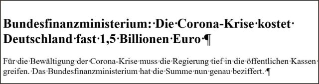 Bild 3. Bereits Mitte Oktober lagen die Gesamtkosten der Maßnahmen zur Corona-Bekämpfung nach einer Meldung in der FAZ bei rund 1500 Milliarden Euro