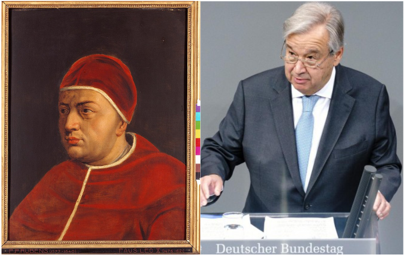 Abb.1, links Quelle: Bild vom Gemälde von Peter Paul Rubens: Papst Leo X. Rechts: UN-Generalsekretär Guterres, einer der Haupttreiber beim sog. anthropogenen Klimawandel, Quelle: Deutscher Bundestag.