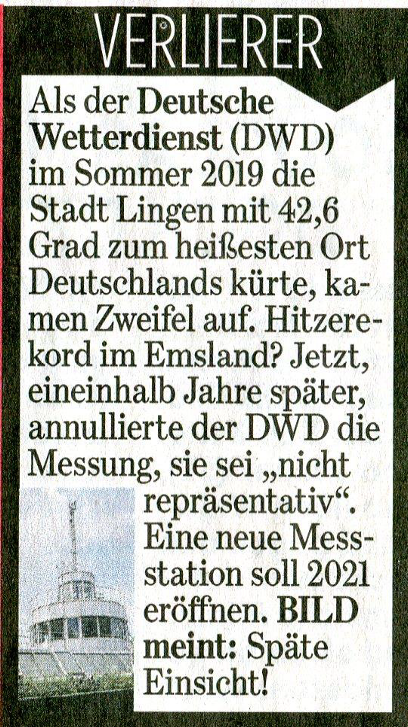 Mittlerweile räumt sogar der DWD ein, dass mit solchen Aussagen wie „heißester“… etwas nicht stimmt und diese falsch sind, Abb.14.