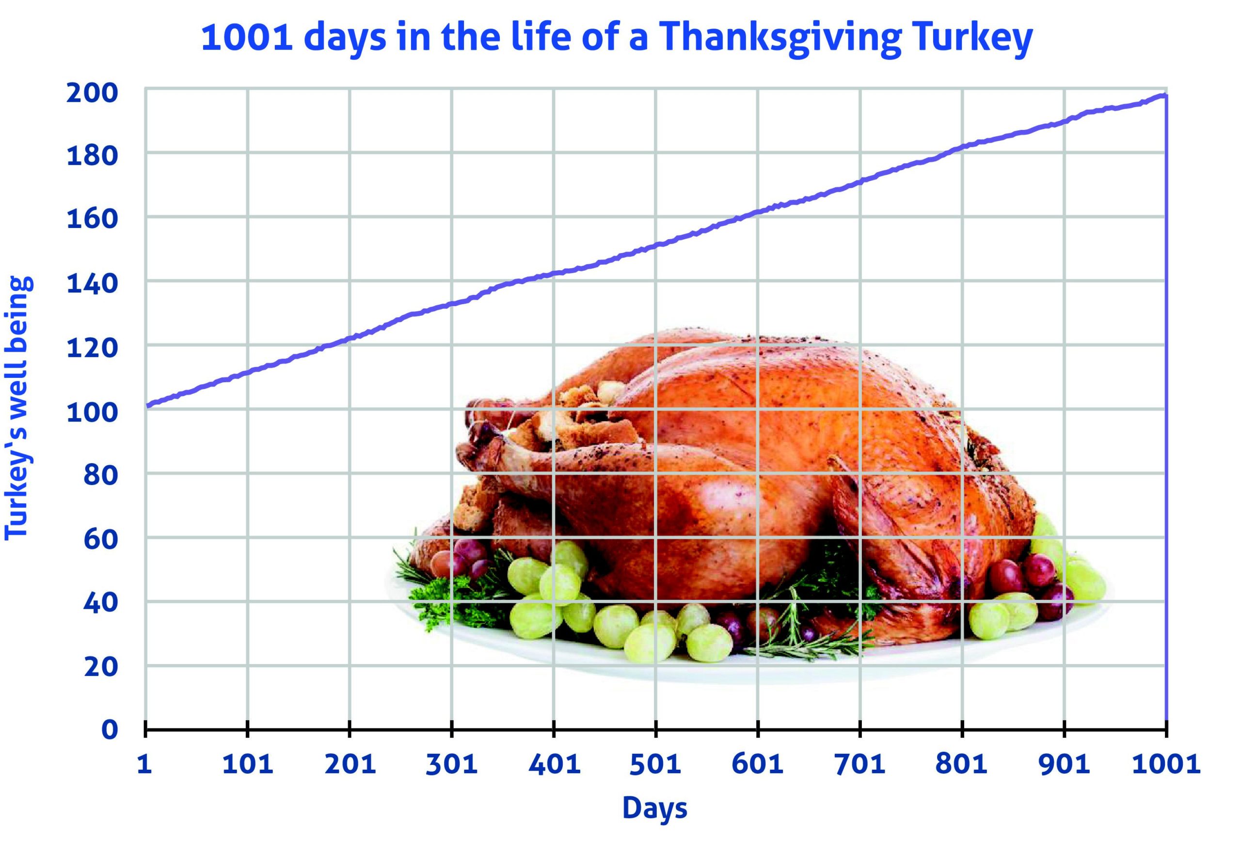 Bild 10: 1001 Tage im Leben eines amerikanischen Truthahns bis zum Thanksgiving-Day. Quelle: Nasim Taleb, The Black Swan