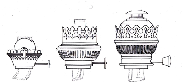 Es sei noch erwähnt, dass die unterschiedliche Größe der Brenner und Zylinder, wie auch die der Dochte, in der Maßeinheit der „Pariser Linie“ angegeben wird.