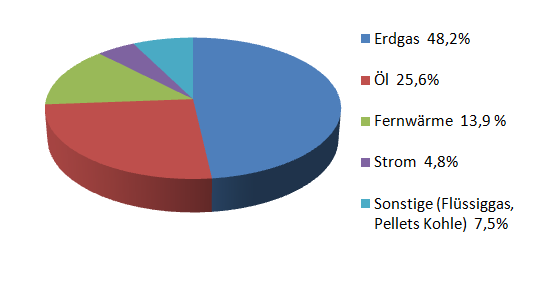 Raumheizungen mit Öfen, welche mit Holz oder Briketts beschickt werden, sind gefeit gegen einen Stromausfall, doch besitzen sie inzwischen Seltenheitswert. Einer BDEW-Studie zum Heizungsmarkt /34/ lassen sich die Angaben für eine Abschätzung jenes Teils der Wohnungen entnehmen, in denen es bei einem Blackout in Deutschland unabänderlich kalt wird (s. Bild 16).