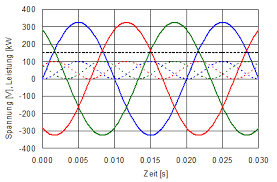 Moderne Häuser und auch Wohnungen sind grundsätzlich mit Dreiphasenstrom (Drehstrom) versorgt. Das bedeutet: Es werden drei spannungsführende Leiter (Phasen genannt) in den Haus- (Wohnungs-) anschluss geführt, deren Wechselspannungen zeitlich gegeneinander versetzt (phasenverschoben) sind, wie Bild 23 zeigt.