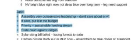Laut zwei gleichzeitig aufgetauchten Notizen von einem Treffen in der Rockefeller-Villa – eine handschriftlich von einem Mitarbeiter des Rocky Mountain Institute, eine andere von einem Vertreter von Tom Steyers Energy Foundation – legte Raimondos eigene Beraterin im Kabinett, die Leiterin des Umweltministeriums Janet Coit fest, dass dies bedeutete, „vor einem staatlichen Gericht“ auf die „Priorität eines nachhaltigen Finanzierungsstromes“ zu klagen.