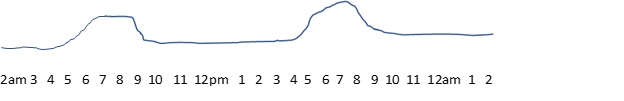 Stellen Sie sich einen Patienten vor, der permanent an einen IV-Schlauch angeschlossen ist, 24-7-365, der die richtige Menge an Medikamenten erhalten muss, um am Leben zu bleiben. Aber der Zeitplan für die Medikamentenabgabe ändert sich mit jeder Stunde, wie im folgenden Diagramm dargestellt. Sie muss langsam um 6:00 Uhr morgens ansteigen, beginnt dann um 9:00 Uhr abzunehmen, pendelt sich für viele Stunden ein und beginnt dann um 16:00 Uhr wieder anzusteigen, um nach 20:00 Uhr wieder abzufallen und dann wieder ein langes niedriges Niveau zu erreichen. Nun muss auch die abgegebene Medikamentenmenge sehr genau dosiert werden, etwa plus/minus 0,001 ML. Falls sie über oder unter diesem engen Bereich liegt, kann der Patient in ein Koma fallen (Brownout), oder falls sie weit außerhalb des Bereichs liegt, kann der Patient sterben (Blackout).