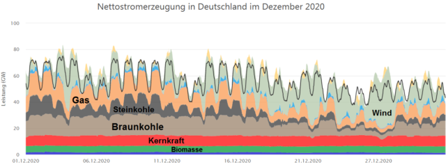 Mangels geeigneter Winddaten (DWD-Flächenmittel gibt es monatsweise leider nur für Lufttemperaturen, Sonnenscheindauer und Niederschlagsmenge) lassen die Ergebnisse der deutschen Stromerzeugung gewisse Rückschlüsse auf die Windstärke zu, denn Deutschland möchte ja am liebsten ganz auf Fossile und Kernenergie verzichten, und hat in den letzten 30 Jahren den Ausbau der Windenergie massiv vorangetrieben – doch wenn der Wind einschläft, zeigt sich das ganze Dilemma der Deutschen Energiewende: