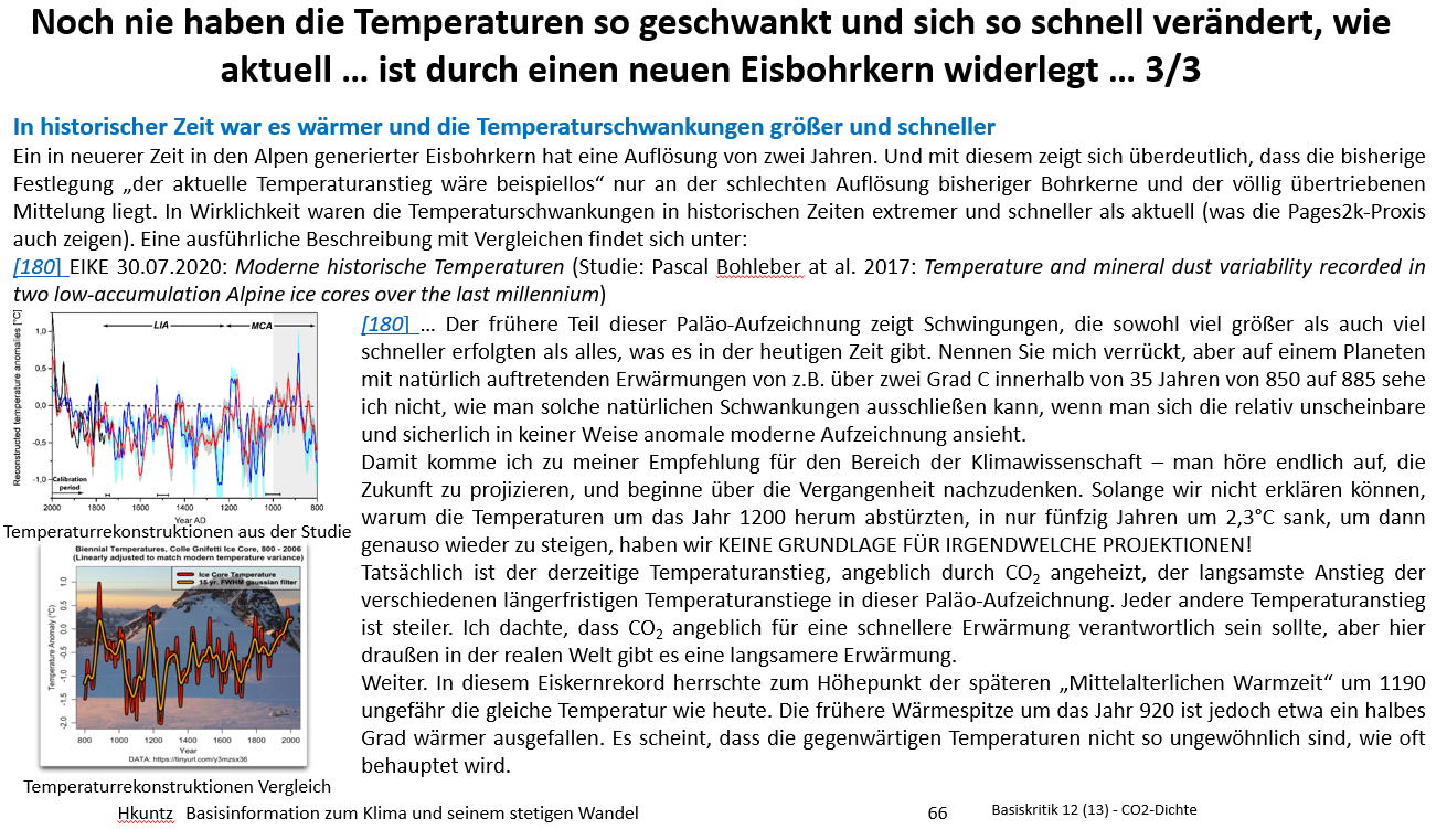 - Eine (unvollständige) Zusammenstellung von begutachteten Klimafachveröffentlichungen mit anderen Ergebnisse, als denen, die vom IPCC bevorzugt werden (hier), ferner eine Aufzählung von prominenten, weltbekannten Physikern, die einer maßgebenden, gefährlichen globalen Erwärmung widersprechen (hier).