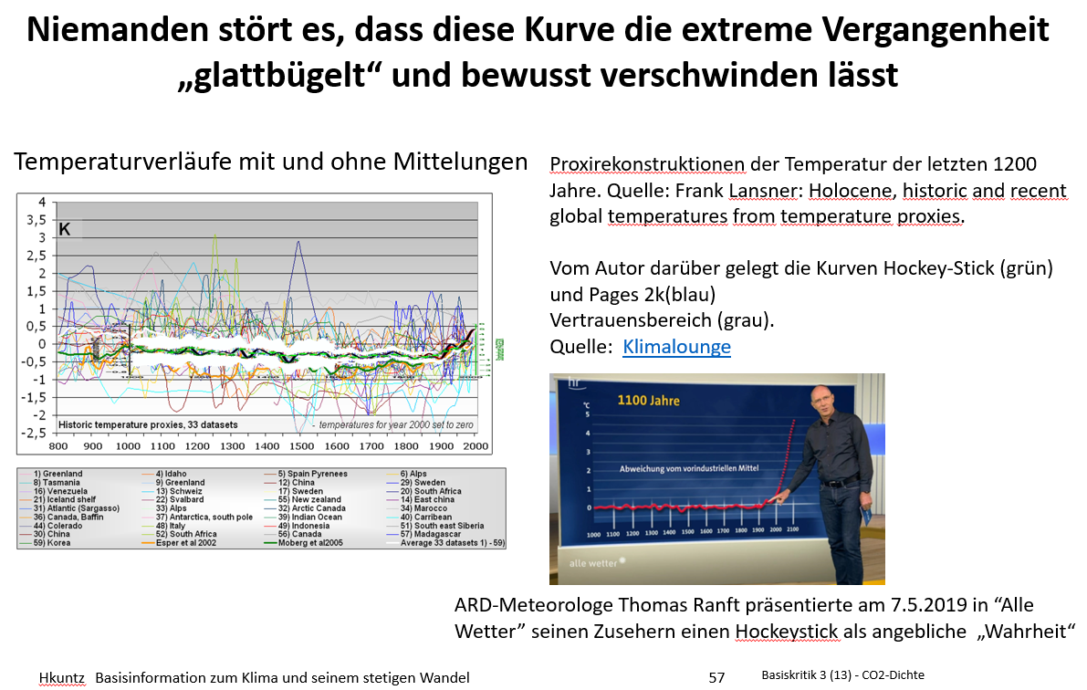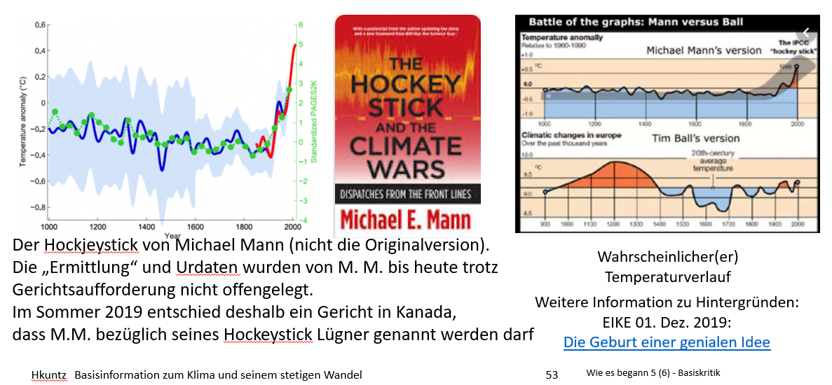 Dass wir derzeit in der ruhigsten Klimazeit einer langen Klimageschichte leben dürfen und viel eher Angst vor der bereits überfälligen Eiszeit haben müssen (was man um 1970 bereits als eingetroffen befürchtete).