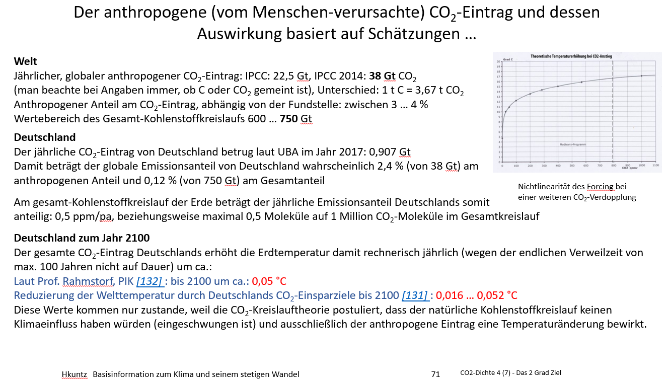Dabei ist gerade dies die alleinige – und damit wichtigste – Basis des „menschengemachten Klimawandels“. Eine Information über diesen extrem strittigen Punkt des ganzen „AGW-Klimagebäudes“ müsste man auch Kindern geben, und darüber, welchen (extrem geringen) Einfluss zum Beispiel Deutschland mit seiner CO2-Reduktion am Klima „hat“.