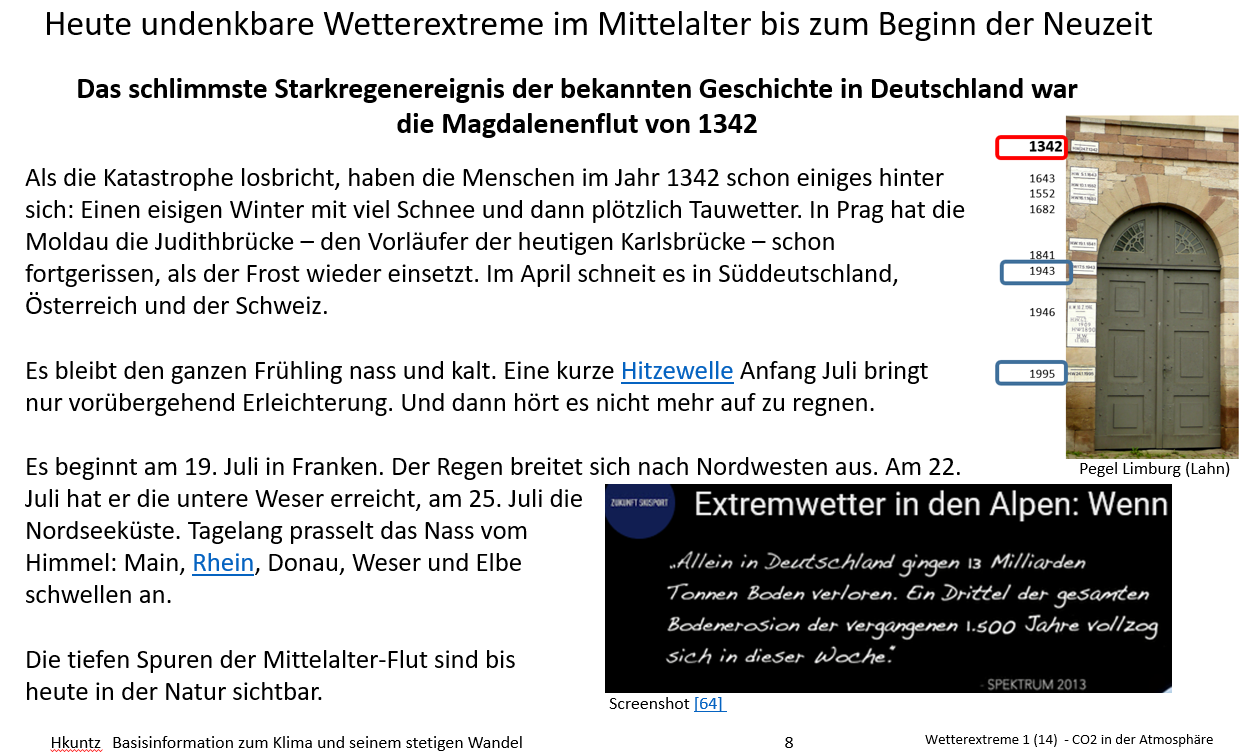 Geht man in der Historie einfach auch mal ein bisschen zurück, stellt man fest, dass die wirklich schlimmen und extremen Naturereignisse zur Zeit des „Natürlichen“ und kälteren Klimazeitraumes stattfanden.