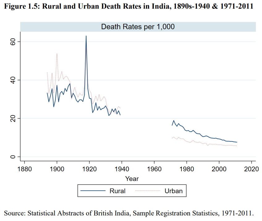 Bild 24 Relative Todesraten für Indien. Quelle: IIMA Working Paper W. P. No. 2020-12-03: Pandemics and Historical Mortality in India