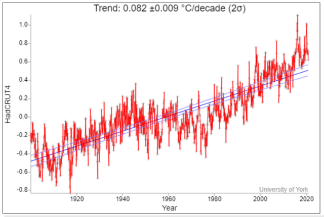 Das ist falsch. Die bei den IPCC reports berücksichtigten Klimamodelle sind allesamt globale Zirkulationsmodelle, die alle die anderen Klimatreiber ebenfalls implementiert haben. Das interne Klimarauschen zeigen auch die Klimamodelle. Was glauben Sie, woher sonst die Schwankungen in den Temperturkurven in der Abb. oben herkämen?