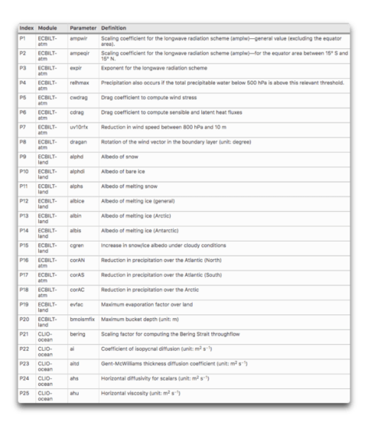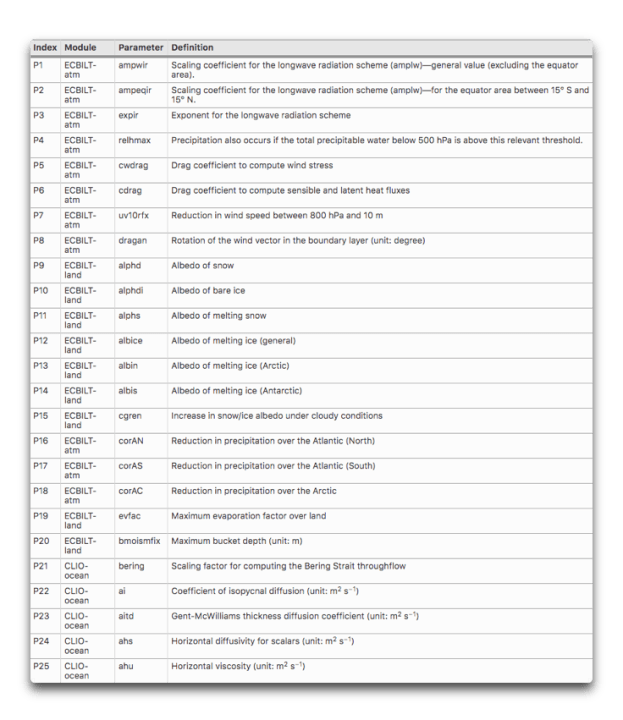 ● Je mehr einstellbare Parameter ein Modell hat, desto unwahrscheinlicher ist es, dass es die Realität genau abbildet. Klimamodelle haben Dutzende von abstimmbaren Parametern. Hier sind 25 von ihnen, es gibt aber noch viele mehr: