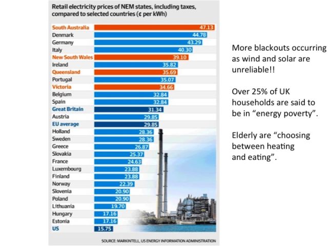 Die „grünen Länder“ weltweit haben Strompreise, die dreimal so hoch sind wie unsere. Wir stehen ganz unten auf der Liste. Aber für wie lange noch?: