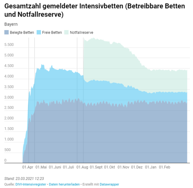 Am 22.03. wurden die neuen Coronamaßnahmen verkündet [2] und der Bayerische Lokalfürst Söder (Jurist) klärte seine Untertanen wieder auf, warum diese leider, aber unvermeidbar, immer härter erforderlich werden; dpa 23.03.2021 [3]: Söder: Die Lage ist ernst und wird sehr viel ernster werden … «Die dritte Welle rollt durch Bayern», sagte er. Und diese sei deutlich gefährlicher, es handle sich quasi um eine komplett neue Pandemie. Sechs Wochen sei es bei den Corona-Zahlen abwärts gegangen, seit vier Wochen gehe es wieder nach oben …