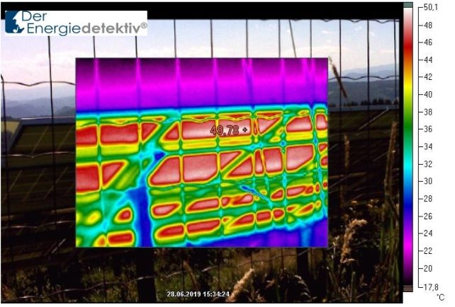 - Die, gegenüber der Umgebungsluft, höhere Temperatur der Anlagen ist nicht nur mit einer Wärmebildkamera sondern durch einfache Messungen oder gar nur durch Auflegen der Hand an sonnigen Tagen deutlich wahrnehmbar.