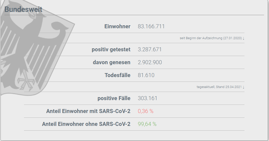 Daraus errechnet sich ein Deutschland-Inzidenzwert von: