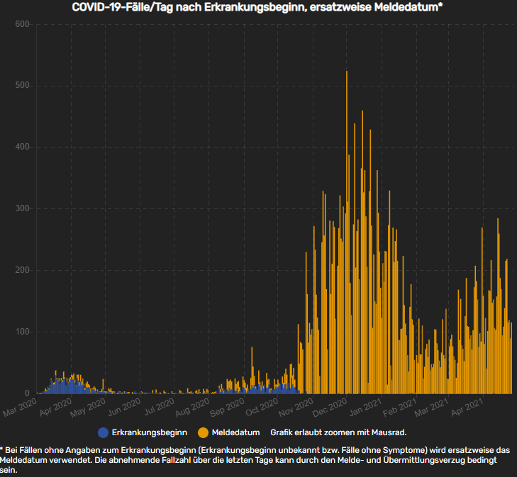 Nordbayern: … Auf Nachfrage verweist das LGL auf die Nürnberger Behörde: „Im vorliegenden Fall ist es den uns vorliegenden Informationen nach so, dass die entsprechenden Daten seitens des Gesundheitsamtes nicht übermittelt wurden“, heißt es in einer E-Mail-Antwort des Landesamts. Nürnbergs Gesundheitsreferentin … begründet die fehlenden Krankheitsdaten mit einem zu hohen Aufwand: „Wir übermitteln an das LGL nur nach Meldedatum, weil der Aufwand bei jedem Datensatz in der Datenbank nachzusehen und den Krankheitsbeginn zu ermitteln sehr hoch ist. Für die Berechnung der Sieben-Tage-Inzidenz ist das Meldedatum maßgeblich.“