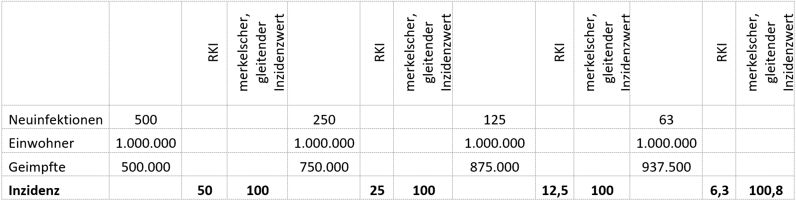 Welchen Wahnsinn man mit der Inzidenz treiben kann – dem unsere ebenfalls wahnsinnig gewordenen Ministerpräsident*innen auch noch zustimmen -, hat unsere Kanzlerin gerade wieder bewiesen.