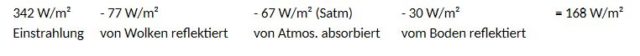 Die von der Erdoberfläche in FIG.7 absorbierte Strahlung im Mittel errechnet sich somit zu 168 W/m².