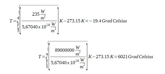 Da sie die Leistung der Sonne als zu gering annehmen kommen sie auf unsinnige Aussagen.