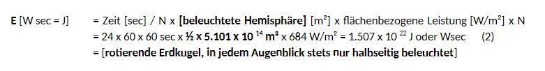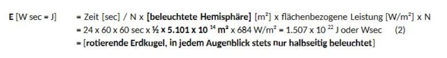 Mit einem Erdradius R von 6.378 Km dreht sich in jeder Sekunde die Erde um 1/86400 eines 24-h-Tages ein Stück weiter. Oder 86.400 Energieportionen einer Sekunde erhält die Erde in 24 Stunden oder: