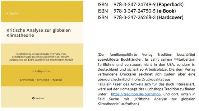 9 A. Agerius, 2021, Kritische Analyse zur globalen Klimatheorie, Erweiterung-Vertiefung-Prognose, 2. Auflage, tredition, Hamburg