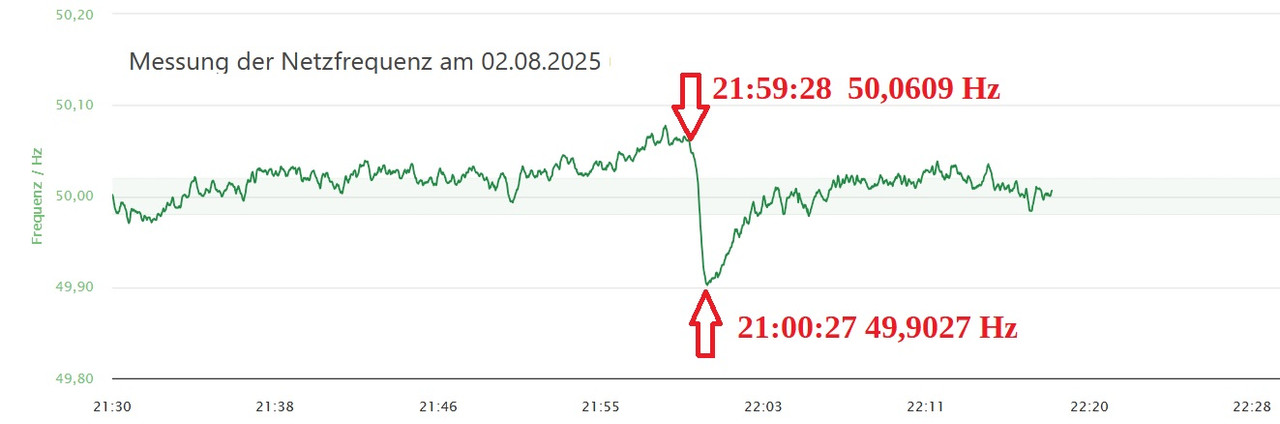 Heute am 2.8.2025 vor einer halben Stunde, hatten die Kraftwerke im Generatoren auch wieder einen kleinen „Aussetzer“ so zumindest sagen das die Aufzeichnungen.