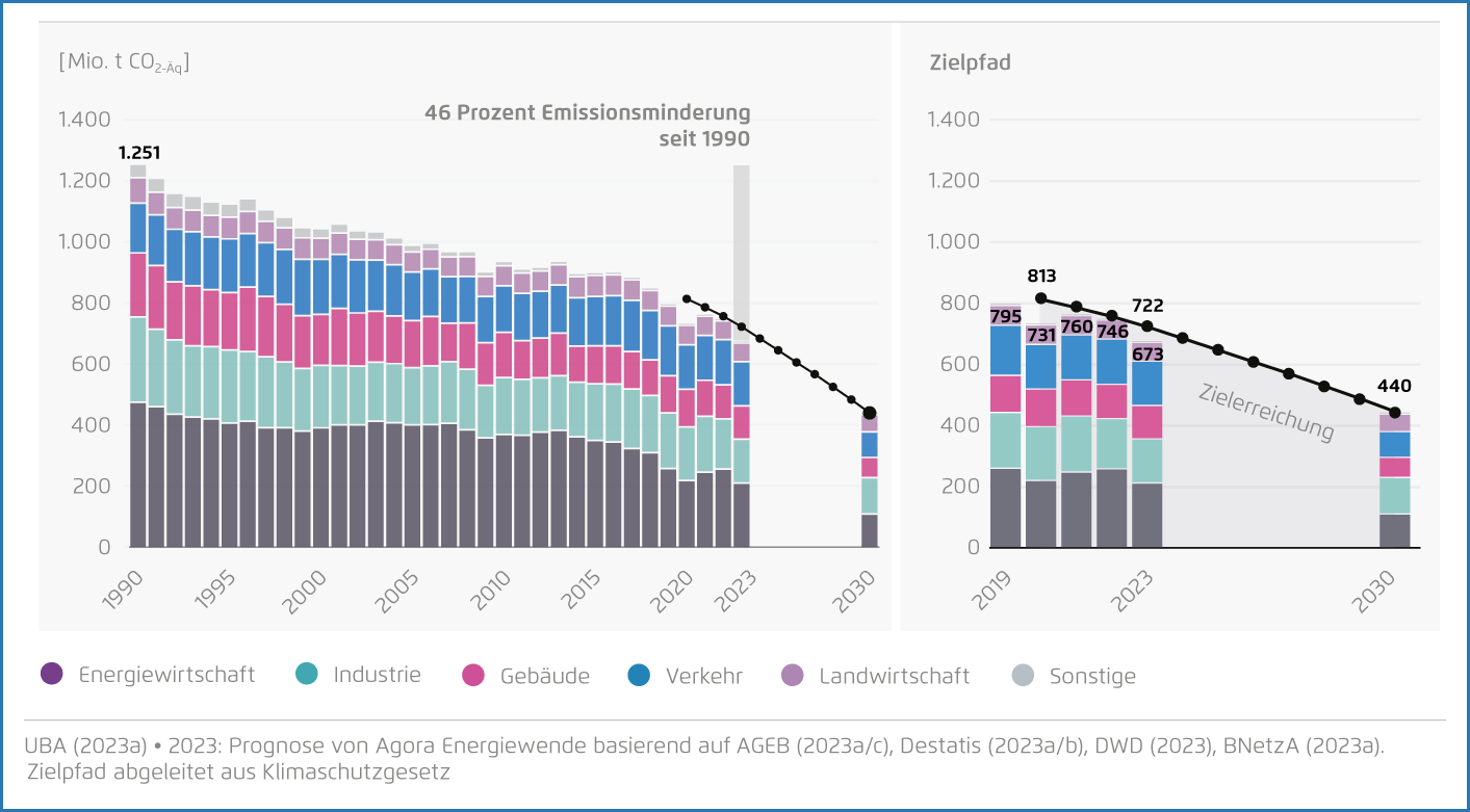 Im Jahr 2023 sind Treibhausgasemissionen in Deutschland auf ein Rekordtief gefallen.