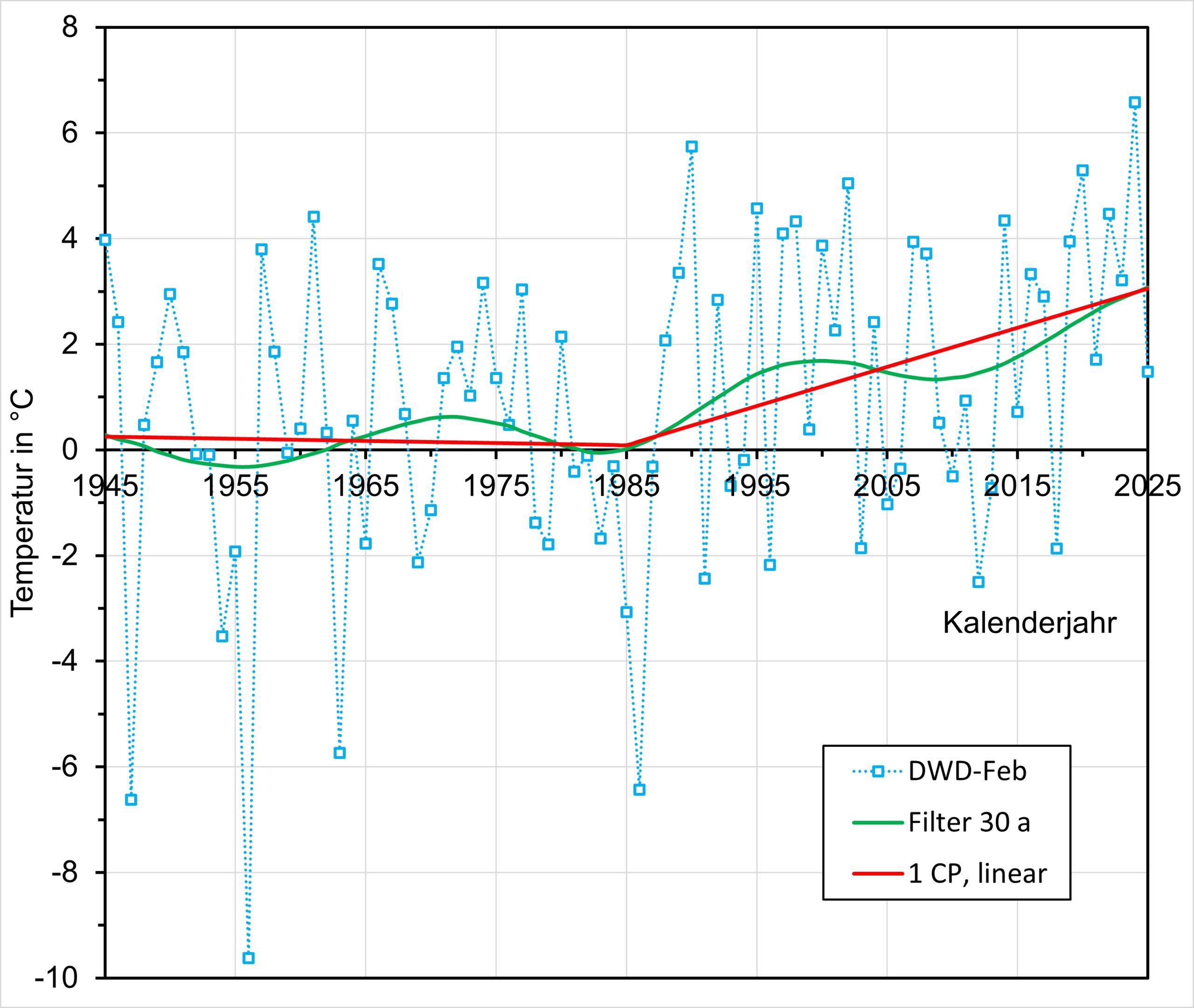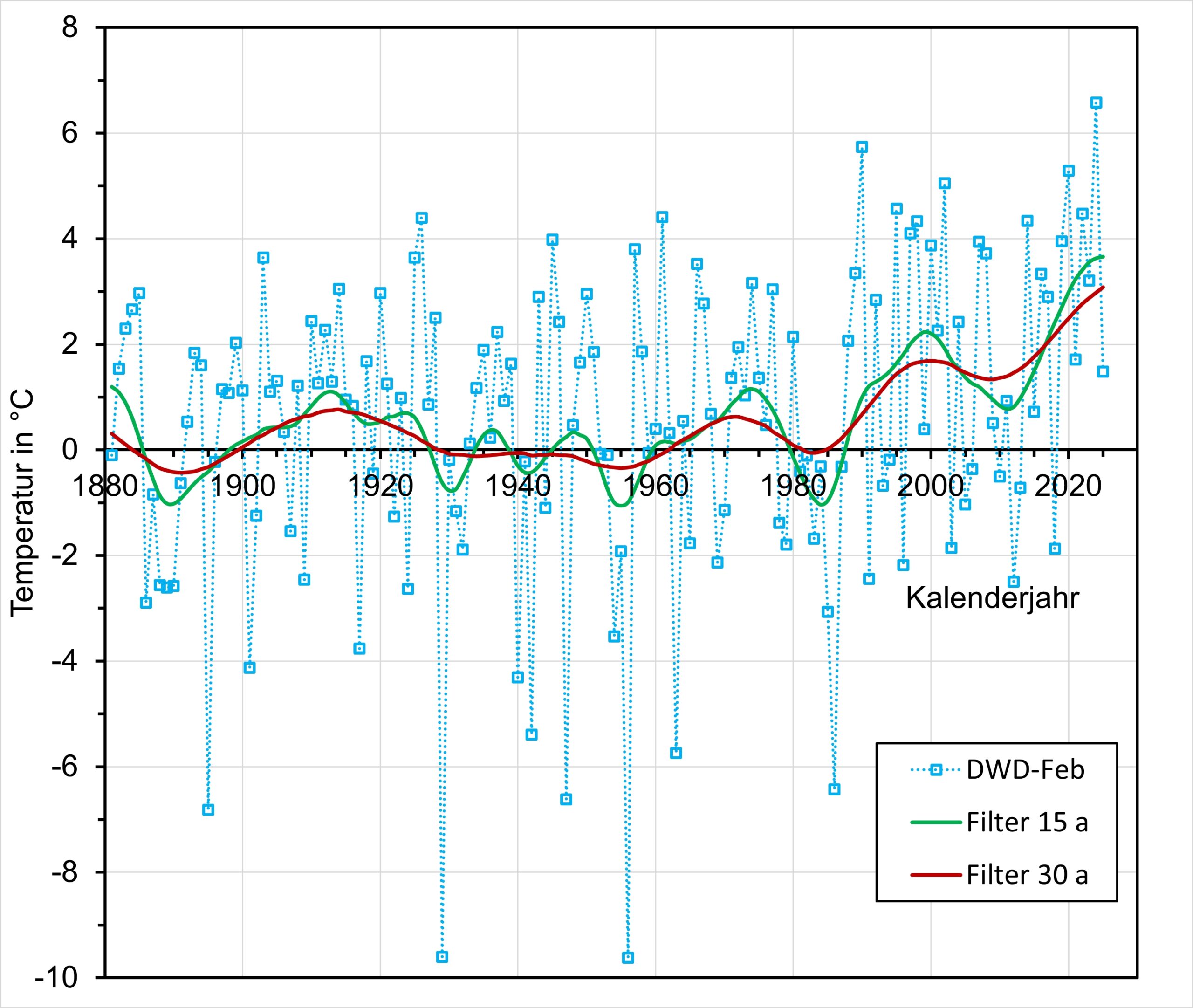 Die Februartemperaturreihen des Deutschen Wetterdienstes beweisen: Es gibt keinen Klimanotstand. Deshalb muss auch keiner bekämpft werden. Aufruf an die Politiker: Lasst diesen Blödsinn sein und werdet endlich wieder normal