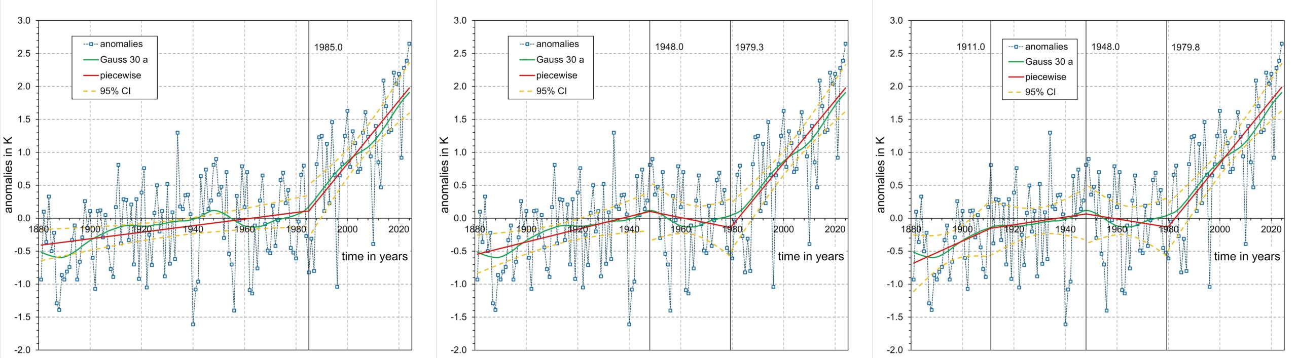 2. 1987 auf 1988: Temperatursprung bei allen drei Messreihen von etwa 2 Grad.